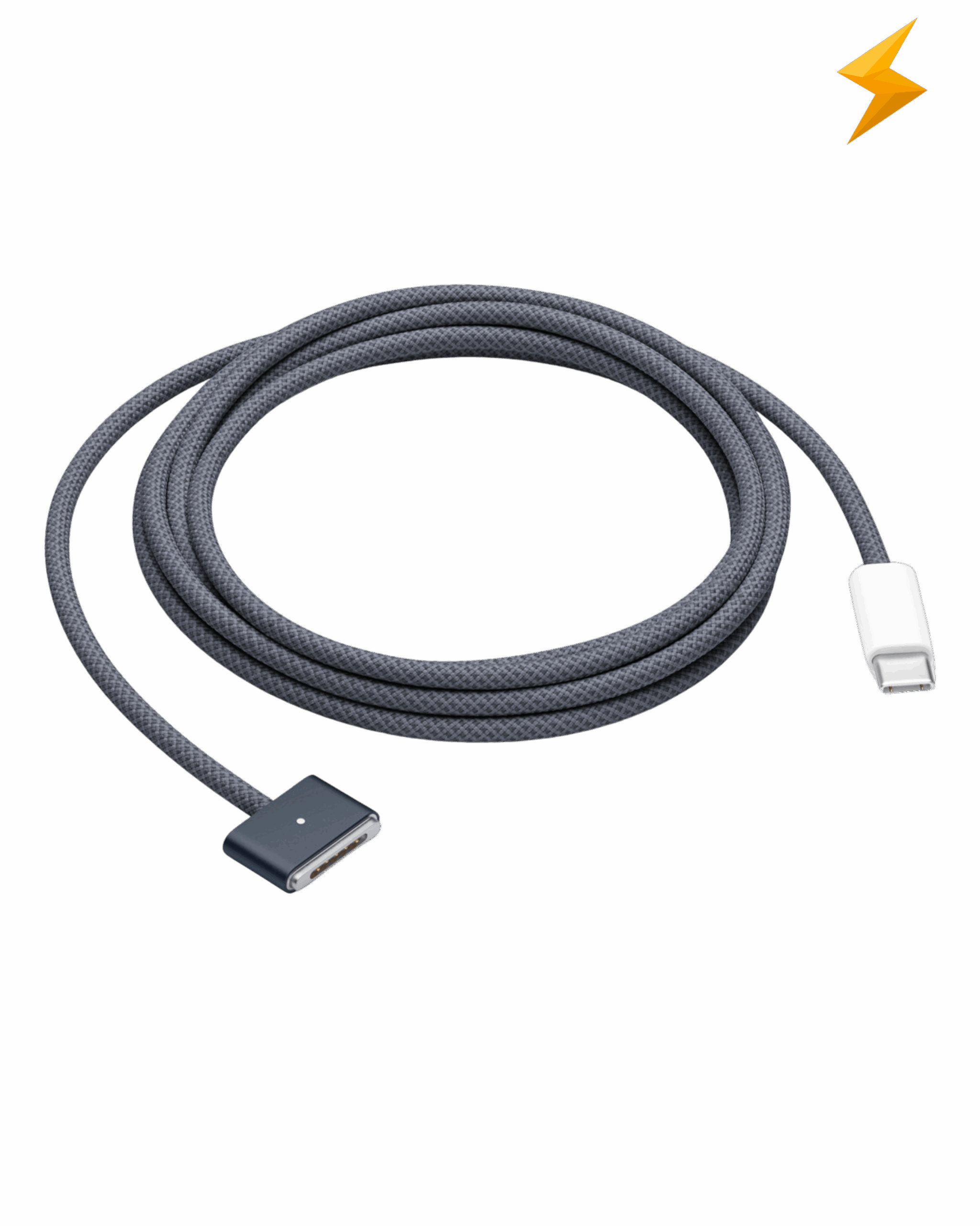 This 2-metre charging cable features a magnetic MagSafe 3 connector that helps guide the plug to the charging port of your Mac laptop. Pair it with a compatible USB-C power adapter to conveniently charge your laptop from a power socket and take advantage of fast-charging capabilities.